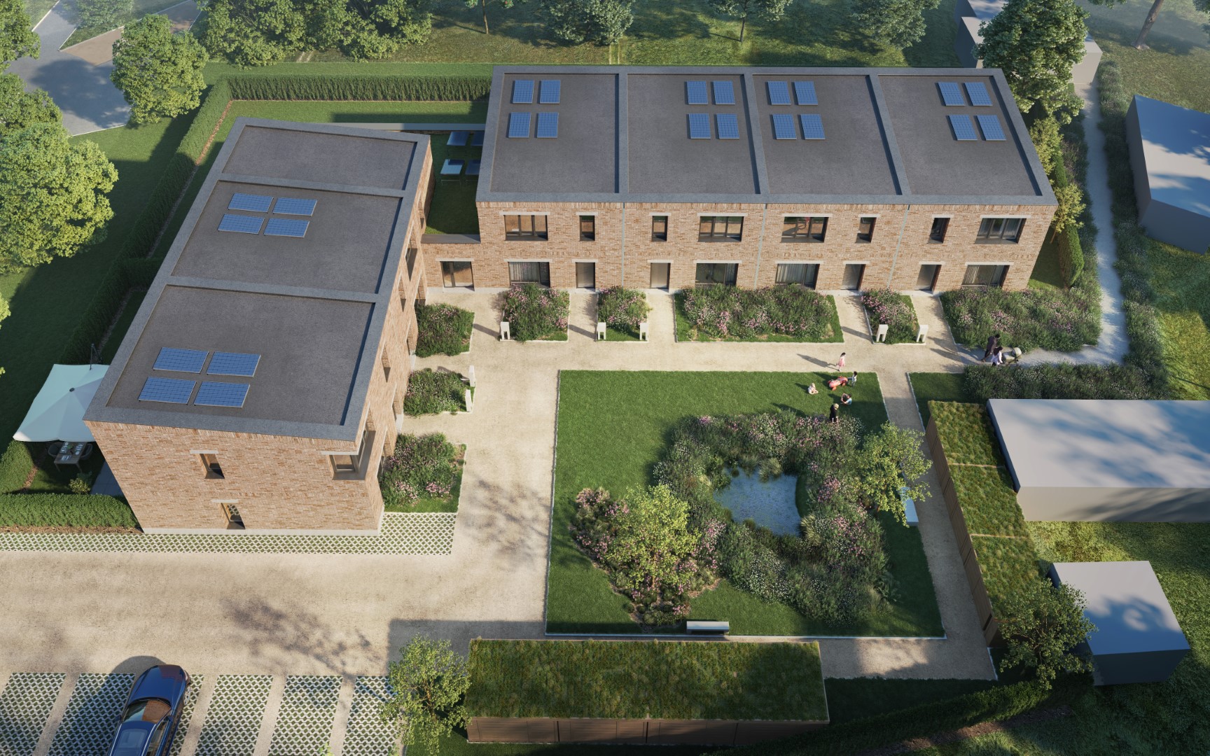 - Zeven gezinswoningen met stadstuin
